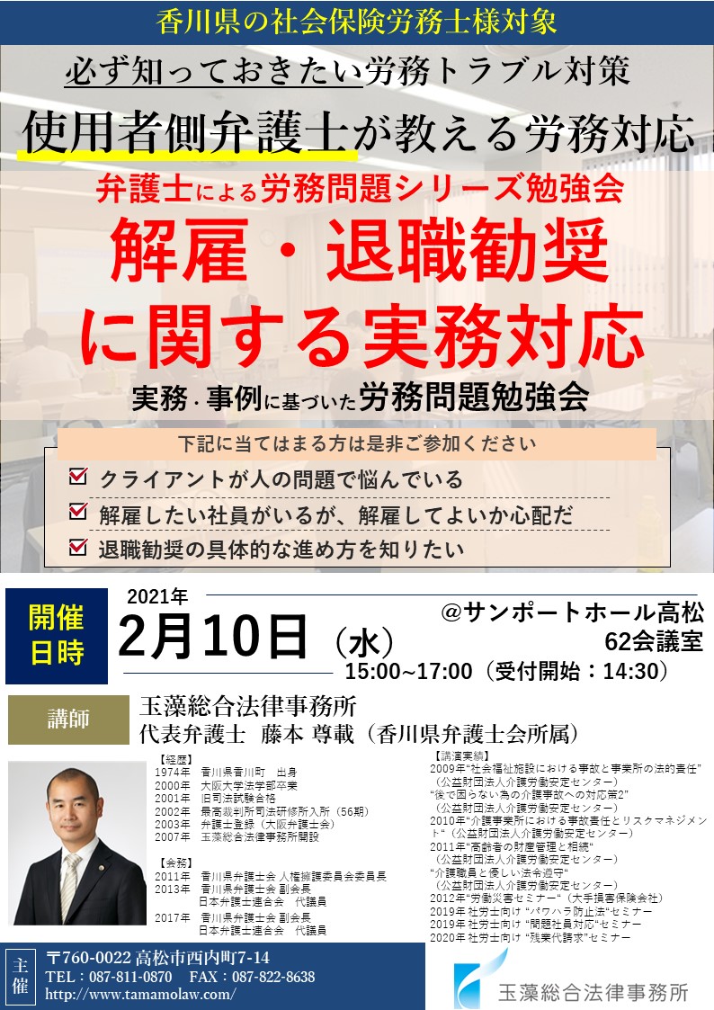 今回は解雇・退職勧奨に関する実務対応をテーマに開催いたします。